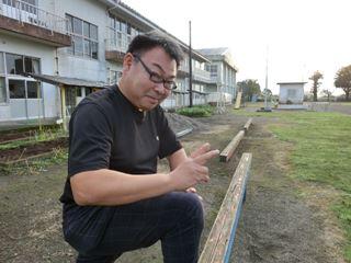 用務のダンディ先生、既に全力で植栽中。