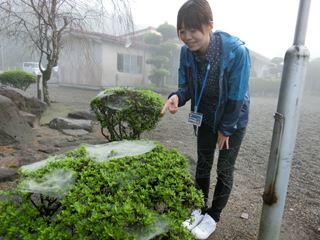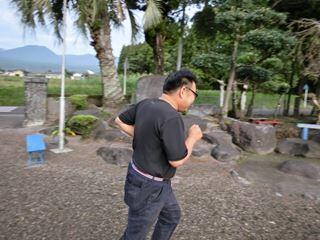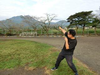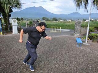 こうやって、唾液がとぶ距離を体感させるんです。