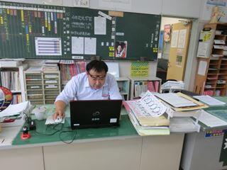 職員室に戻ると。教頭先生がお仕事中。