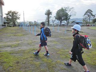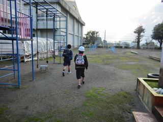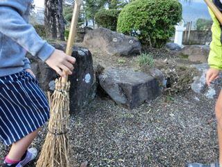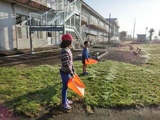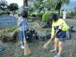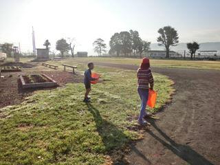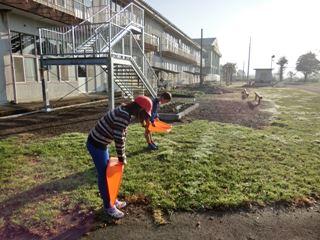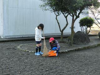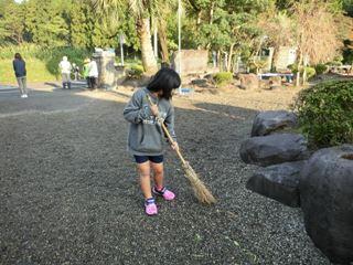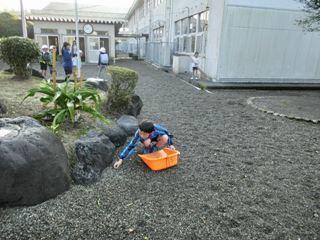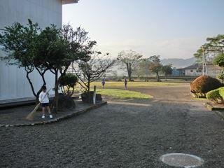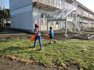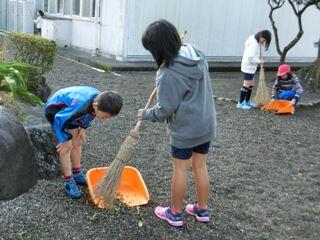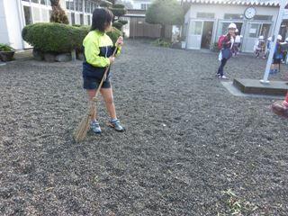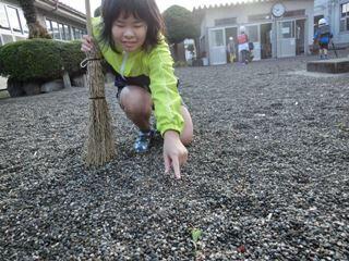 6年が、いつも行う、落ち葉の回収作業、そして、運動場を出るときに、運動場に心を込めてありがとう、という行為。