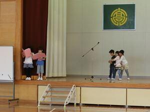 プリントを取りに来ました。1年、さのっこ( )です。( )です。