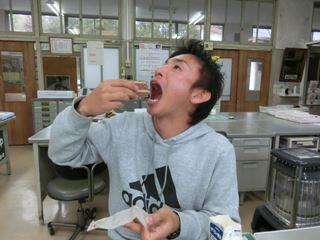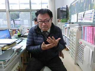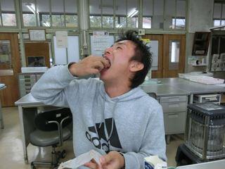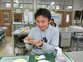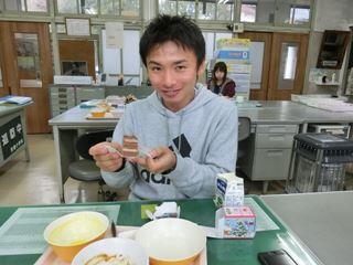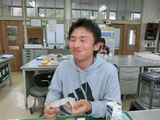 さて、職員室へ。大盛り先生、ちょうど、ケーキタイム。