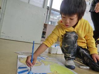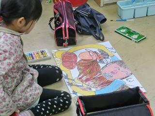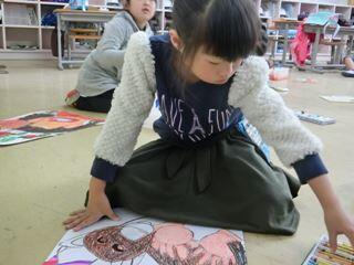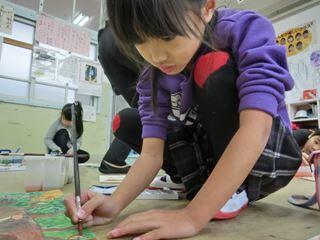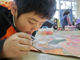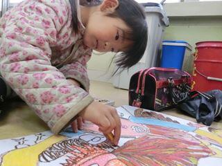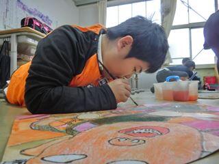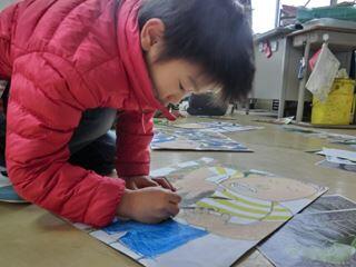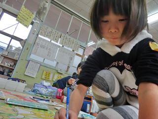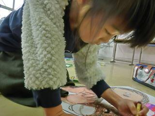では、集中して、名作を生み出している、さのっこの真剣な表情をローアングルで。