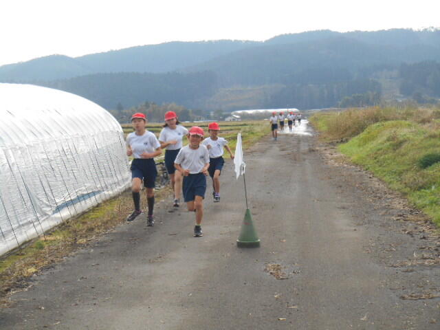 下り坂も登り坂もあるコースですが、参加した児童は、全員ゴー