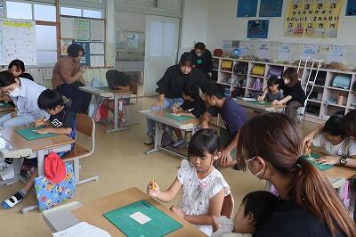 1、2年生は、図工の授業でした。親子でカッターナイフの使い方を学びました。おうちの方が隣でサポートしていただき、大変助かりました。おかげで安全に活動することができました。
