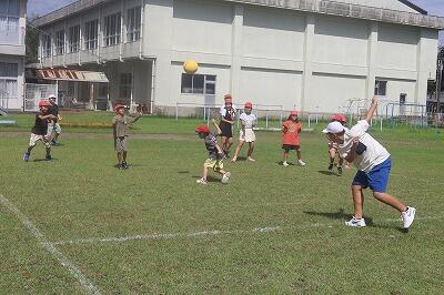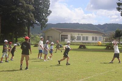 朝夕が涼しくなりようやく秋の訪れを感じるようになりました。気候もよくなったこともあり、昼休みに「みんなで遊ぶ日」をしました。今日は全校でドッジボールを楽しみました。高学年の子どもが低学年のお友だちにやさしくする場面もたくさん見られました。みんな仲良く楽しく遊ぶことができました。