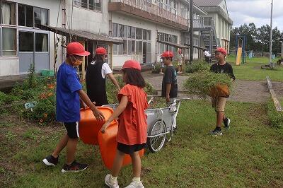 今日は久しぶりに外そうじをしました。子どもたちはいっしょけんめい草取りをがんばっていました。縦割り班で行うことで、高学年がいい手本になっています。