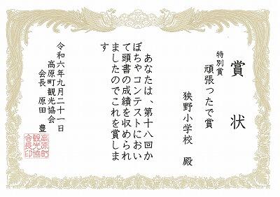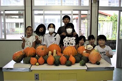 観光協会主催の「かぼちゃコンテスト」に向けて、教頭先生が苗からお世話してくださいました。先日、そのコンテストに収穫したかぼちゃを出品したところ、特別賞を受賞しました。賞品として商品券をいただきました。肥料や土の購入に充てたいと思います。教頭先生、ありがとうございました。