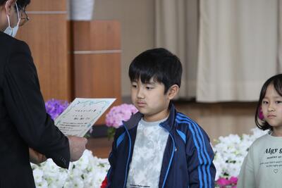 3月26日(火)は、令和5年度の終了日でした。各学年の代表児童が修了証書を受け取り、代表児童2名が1年間を振り返り、次年度に向けての抱負を発表しました。校長先生からは、この一年「けいじめと思いやり」について幾度となく話してきた理由や掃除などにおいて自分から行動できる人が増えており成長を感じること等についてお話がありました。また、担当の先生からの春休みの過ごし方についてのお話やベストリーダー賞の表彰がありました。1年生から5年生の計23名、今年1年間よく頑張りました。4月からの更なる成長を楽しみにしています。