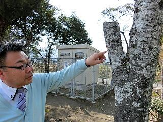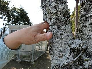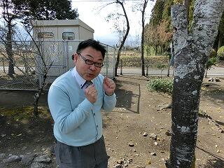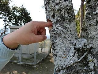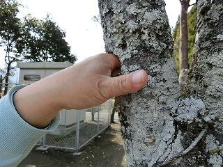 今日、昼休み終了時、何気なく、桜の木を見てみると・・・、さのツキーがいるじゃないですか!