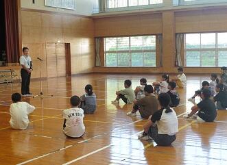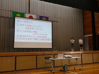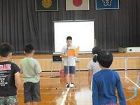 1時間目に終業式を行い、はじめに児童代表が1学期を振り返りがんばったことや今後の目標などを発表しました。その後、学校長から、1学期の頑張りや2学期に頑張って欲しいことなどの話がありました。その話の中では、「先生口激」という、あいさつや言葉かけなどを相手より先に行い、相手を気持ちよくしましょうという話がありました。最後に、1学期にお世話になった先生へ子どもたちがお礼を伝えました。