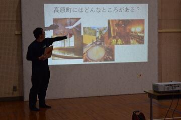 この日は、町内の3年生が集まり、高原町のことについて学びました。高原町の花、木、鳥など、そして、どのような公共施設や観光地などがあるのかなどについて多くを学ぶことができました。子どもたちもいろいろな質問をしていました。その後、お店の見学をしてお店の人々の工夫や努力などについて学びました。とても有意義な学習になりました。