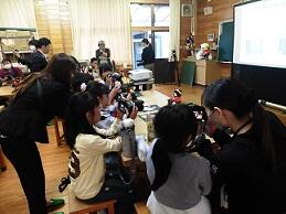 11月6日、宮崎キャノン様にご来校いただき、写真教室を小中合同で開きました。まず、午前中に理科の学習で光の反射とカメラの仕組みについて学び、制作キットを使って、ズーム機を作りました。午後からは、カメラの使い方を学び、その後、実際に撮影会を行いました。校内の様々な場所や友達のベストショットを撮り、互いの作品の披露会を行って写真を楽しみました。それぞれが子どもカメラマンとなり、子どもの目線からのベストショットを撮影しました。とてもよい思い出となりました。ありがとうございました。