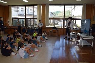 14日(金)に、避難訓練(火災)を実施しました。今回は、子どもたちに何も知らせず、予告なしの訓練をしました。それでも子どもたちは、サイレンが鳴り響くと先生の指示に従って、運動所に無言で素早く避難しました。その後、西諸広域行政事務組合 高原分遣所の署員の方から避難の仕方についてや消火器の使い方などを学びました。いざというときに、命を守る行動ができるよう学校でも日々、気を付けていきたいと思いました。