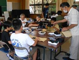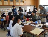 28日(木)2・3時間目に、宮崎県技能振興コーナー「ものづくり体験」※和紙貼り化粧箱(表装) の学習を行いました。これは、ものづくり体験を通して、ものづくりの大切さや楽しさなどの魅力を感じ取り、ものづくりに対する理解を深めていくことを目的とした学習です。 学習では、高度な技能を持った「ものづくりマイスター」の指導、助言等を受けながら子どもたちは、一生懸命に表装作りに取り組んでいました。出来上がった化粧箱を眺めながら、満足げな子どもたちの笑顔が多くみられました。