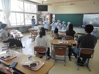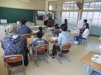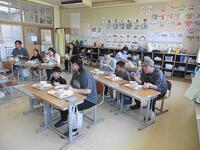 参加者のみなさまは、1、2年生の学級で、子どもたちと一緒に給食を食べました。この日の献立は、「むぎごはん、すましじる、みそころばかし」でした。いつもと違った雰囲気の中で食べる給食に、子どもたちも楽しそうでした。保護者のみなさまも久しぶりの給食を堪能されたようです。