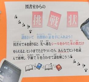 前回お伝えした、「図書館からの挑戦状」は、子どもたちが無事にクリアしました。そして、校長先生の宝物を見事に探し当て、校長室に届けてくれました。校長室では、そのお礼に本を3冊手渡しました。この本は、担任の先生方が一人一人の児童をイメージしながら探し当てた図書の本でした。子どもたちは、「これ読みたかったんだ」と満面の笑みで受け取っていました。