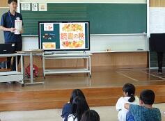 今回は、総合的な学習の時間の取組として、高原町の魅力を多くの人に知ってもらうために、各学校の6年生が考案した「オリジナル丼」と「スイーツ」についての発表を行いました。発表には、審査員として企業の方にも参加していただき、審査結果に基づいて、試作作りと実用化までの検討をされるということでした。各グループともとても張り切っていました。