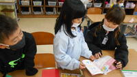 2月19日(月)、1校時、読み聞かせを行いました。読み聞かせグループ「フルーツバスケット」の3名の方が来校し、低学年、中学年、高学年に分かれて実施しました。