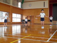 3・4年生は、曲に併せて個人技のあと、長縄の連続跳びに挑戦しました。元気のよいかけ声と、息の合った連続跳びに、練習の成果とチームワークの素晴らしさが感じられました。