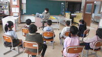 今年も、地域の読み聞かせボランティアグループ「フルーツバスケット」のみなさん(6名)に早朝よりお越しいただき、季節にあった絵本や、児童の実態に合った本を選んで来られ、読み聞かせをしていただきました。