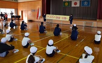 3月12日(火)あいさ2の日に、いつも正門で子どもたちを迎えてくださっている後川内地区の民生委員さん3名に感謝の気持ちを伝える集会を中学校と一緒に体育館で実施しました。