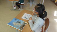 2月19日(月)、1校時、読み聞かせを行いました。読み聞かせグループ「フルーツバスケット」の3名の方が来校し、低学年、中学年、高学年に分かれて実施しました。