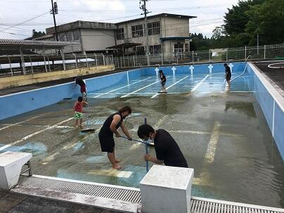 プールの泥除去に力を貸していただきました 投稿日時 : 2021/05/18 学校管理者 児童生徒のプール清掃前に、プールの底に堆積した泥を、消防団の方々に流していただきました。 運動会が延期になって、気落ちしていた子どもたちですが、プールの準備が進められていることを知り、元気を取り戻したようです。