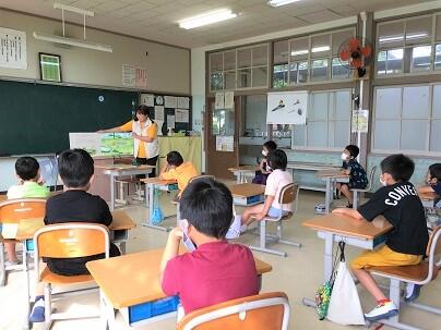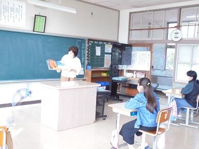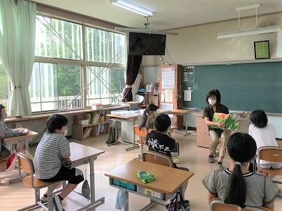 待ちに待った読み聞かせ 投稿日時 : 2021/06/07 学校管理者 本年度1回目の読み聞かせに、読み聞かせボランティア「フルーツバスケット」の3名の方がきてくださいました。空豆、蛍、フラミンゴと、季節を感じるものと梅雨を吹き飛ばす明るい色彩の本に、引き込まれます。 久しぶりの読み聞かせに、子どもたちの反応も大きくたのしい時間になりました。