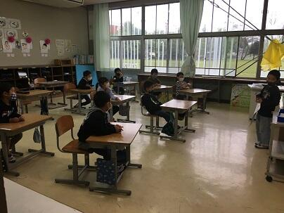 1年生の授業の様子 投稿日時 : 2021/04/13 学校管理者 4月9日に入学式を終えた1年生は、登校1日目です。 2年生が出題するクイズをよく聞いて、答えていました。朝は雨が降る中、傘を差して登校班で歩いて登校しました。立派です。