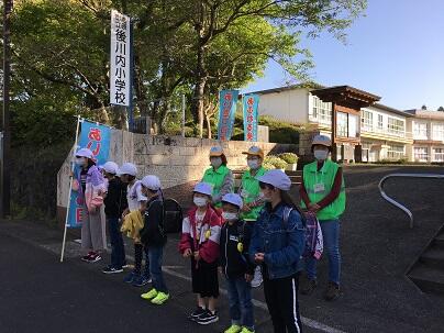 あいさ2の日 投稿日時 : 2021/04/22 学校管理者 令和3年度1回目の「あいさ2の日」。 3名のボランティアの方の笑顔に、迎えられた子どもたちです。1年生も全員歩いて登校しています。初めてのあいさ2の日で、上級生に教えてもらいながら、あいさつのリレーができました。いつも温かい見守りと声かけをしてくださる皆様との出会いの日となりました。