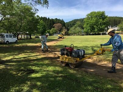 奉仕活動で運動場すっきり 投稿日時 : 2021/04/26 学校管理者 近隣の歩道工事をする大浦建設の地域貢献活動でプール近くの樹木選定、運動場のトラック整備等をしていただきました。重機を巧みに使い、美しく整えていただき、職員も子どもたちも大喜びです。 運動会に向けて、子どもたちが安全に思い切り走ることができます。ありがとうございました。