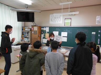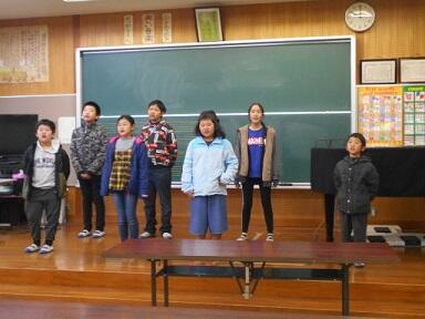 新規日誌7 全ての記事 全ての記事 カテゴリ 今日の出来事 連絡事項 報告事項 ミーティング 本・雑誌 ニュース 映画・テレビ 音楽 スポーツ パソコン・インターネット ペット 総合学習 アニメ・コミック アーカイブ 2025年12月 (2) 2025年11月 (5) 2025年10月 (5) 2025年9月 (5) 2025年8月 (3) 2025年7月 (3) 2025年6月 (6) 2025年5月 (6) 2025年4月 (8) 2025年3月 (7) 2025年2月 (6) 2025年1月 (6) 2024年12月 (7) 2024年11月 (13) 2024年10月 (5) 2024年9月 (9) 2024年8月 (4) 2024年7月 (5) 2024年6月 (9) 2024年5月 (6) 2024年4月 (6) 2024年3月 (7) 2024年2月 (5) 2024年1月 (3) 2023年12月 (5) 2023年11月 (4) 2023年10月 (5) 2023年9月 (2) 2023年8月 (2) 2023年7月 (2) 2023年6月 (6) 2023年5月 (5) 2023年4月 (5) 2023年3月 (7) 2023年2月 (6) 2023年1月 (2) 2022年12月 (4) 2022年11月 (4) 2022年10月 (3) 2022年9月 (3) 2022年8月 (3) 2022年7月 (8) 2022年6月 (6) 2022年5月 (7) 2022年4月 (4) 2022年3月 (10) 2022年2月 (8) 2022年1月 (5) 2021年12月 (8) 2021年11月 (9) 2021年10月 (13) 2021年9月 (8) 2021年8月 (2) 2021年7月 (8) 2021年6月 (13) 2021年5月 (3) 2021年4月 (7) 2021年3月 (4) 2021年2月 (5) 2021年1月 (3) 2020年12月 (7) 2020年11月 (6) 2020年10月 (5) 2020年9月 (5) 2020年8月 (2) 2020年7月 (5) 2020年6月 (5) 2020年5月 (7) 2020年4月 (3) 2020年3月 (2) 2020年2月 (4) 2020年1月 (1) 2019年12月 (2) 2019年11月 (3) 2019年10月 (3) 2019年9月 (4) 2019年8月 (1) 2019年7月 (2) 2019年6月 (1) 2019年5月 (5) 2019年4月 (5) 10件 1件 5件 10件 20件 50件 100件 感謝集会(読み聞かせ) 投稿日時 : 2021/03/08 学校管理者 毎月、読み聞かせをしてくださった「フルーツバスケット」の皆様に、感謝の気持ちを伝える集会をしました。 はじめに、卒業前に最後の1冊を読んでいただきました。 6年間読み聞かせをしていただいて、楽しさを味わって育った子どもたちは、たちまち本の世界に入っていました。本好きの子どもに育てていただいていることを実感しました。 薬物乱用防止教室 投稿日時 : 2021/03/04 学校管理者 薬物乱用防止教室を実施しました。 県内でも少年の薬物関連の事件や逮捕者がいること、別名でネットで取引されることなど人ごとでない現実を知りました。また、さそいを断るのには大変な勇気がいることや、断り方を考えておくことも教えていただきました。40分という短時間で、多くの知識と自分で判断することの重要性を学ぶことができました。 お別れ遠足 投稿日時 : 2021/02/26 学校管理者 お別れ遠足を校内でしました。 6年生とのお別れ集会、縦割り班でのウォークラリーと活動をする中で、楽しい思い出がつくれたようです。 よりよい学校運営のために 投稿日時 : 2021/02/24 学校管理者 今年の教育活動について、ご意見・評価をいただきました。 児童や保護者の評価をもとに、学校の自己評価を説明させていただいた後、委員の方々より率直なご意見や評価をいただきました。地域が期待していることや、子どもたちの将来を見据えた貴重なご意見で、学校の取組について何が大切か改めて考える機会となりました。次年度の学校運営に生かし、よりよい活動ができるようにしていきます。 きんかんの収穫体験 投稿日時 : 2021/02/12 学校管理者 温水さんのきんかん畑で、収穫体験をさせていただきました。 完熟した大きなきんかんがたわわに実る木が、ハウスに広がる光景に、子どもたちから歓声があがりました。二人一組で、教えられた通りに500円玉ほどの実を、収穫し、いただいた袋やポケットがいっぱいになりました。 地域で立派なきんかんが栽培されていることを知るとともに、収穫体験で貴重な学びをさせていただきました。家族で食べるのも楽しみでしょう。ありがとうございました。 新1年生と1・2年生が交流 投稿日時 : 2021/02/05 学校管理者 入学説明会の時間に、新1年生と1・2年生が交流しました。 1・2年生は、新1年生との交流を朝から楽しみにしていました。活動場所からは、子どもたちの声が聞かれ、盛り上がっている様子でした。 4月の入学を、皆、心待ちにしています。 なわとび大会 投稿日時 : 2021/02/04 学校管理者 なわとび大会をしました。 感染防止のため、個人跳びの発表のみとしました。 1・2・3・4年生は、一人ずつ1分間発表しました。1・2年生は、前回し、かけ足、片足跳びを、3・4年生は、二重跳びを発表しました。引っかかってもすぐに跳び始めて1分間一生懸命跳ぶ姿に成長を感じうれしく思いました。 5・6年生は、数人ごとの発表後、曲に合わせて集団で様々な技を披露しました。見ている人に、「こんな技ができるようになりたい。」と思わせるような、かっこいい発表でした。寒さに負けず体力も向上した1・2月です。 新燃岳を考える日 投稿日時 : 2021/01/26 学校管理者 「新燃岳を考える日」の取組で、10年前の噴火について知るとともに、噴火があった時にどのように動けばよいのか考えました。 引き渡し訓練も、ご家庭のご協力を得て、安全に確実に短時間で行うことができました。予測ができない火山活動に、しっかり備えていきたいと子どもたちとともに感じました。 そうじのお手本を見て 投稿日時 : 2021/01/18 