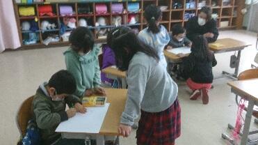 入学説明会を行いました。 投稿日時 : 2020/02/10 学校管理者 早いもので次年度の一年生を迎えるための説明会を行う時期となりました。4月には5名の新入生を迎えることができます。本当にうれしいことです。新入生は、今の1・2年生と入学式に展示する絵を描いた後、親子での給食試食会となりました。入学までの準備がたいへんかとは思いますが、楽しみに待っています。