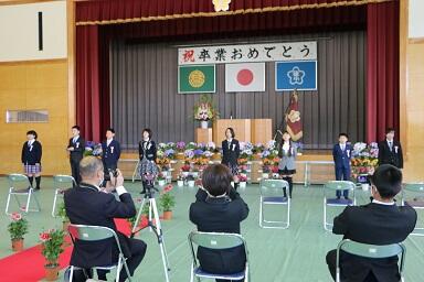 令和元年度卒業式 投稿日時 : 2020/03/25 学校管理者 素晴らしい天気でした。桜もひらき始めました。卒業式が行えたことを本当に感謝します。ご存じのように新型コロナウイルス感染拡大防止のために臨時休業が続き、練習もしないままの卒業式でした。卒業生とその保護者、職員だけの参加でしたが、卒業生は、堂々と将来の夢を語り、卒業証書を受け取り、思い出に残る卒業式になったのではないでしょうか。後川内中、高原中での活躍を期待しています。「夢と希望、そして感謝」 卒業おめでとう!保護者の皆様、学校へのご支援、ご協力ありがとうございました。