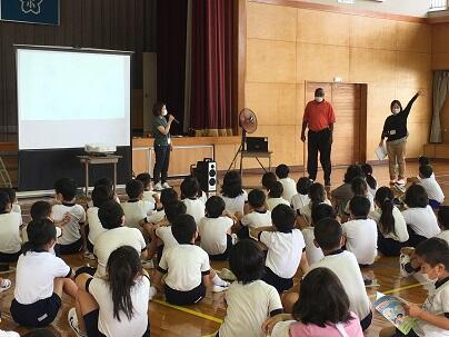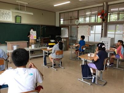 栄養教諭の学校訪問 投稿日時 : 2021/06/28 学校管理者 栄養価の計算や献立を考えてくださる栄養教諭が、後川内小学校を訪問して、一クラスずつ栄養教諭の仕事、給食に込めた願いや、給食に関わる方々について話をしてくださいました。 子どもたちの食べる様子を見たり、給食についての要望を聞いたりして、よりよい給食にしようと力を尽くしてくださっています。