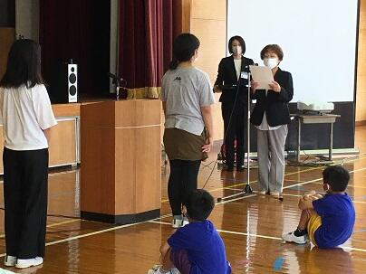 1学期 終業式 投稿日時 : 2021/10/08 学校管理者 1学期の終業の日を、全員そろって迎えることができました。代表の5年生が、1学期の振り返りを、原稿を見ることなく、堂々と発表をしました。他の児童にとって、刺激になりました。 また、9月に実施できなかった青少年健全育成町民大会で発表を予定していた、意見発表と標語を発表しました。発表後に、町の青少年育成町民会議会長より、表彰していただくことができました。 発表や表彰を経験し、自信につながったと感じます。