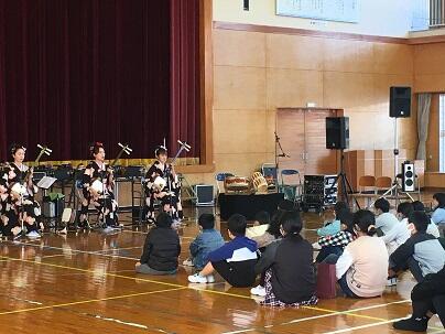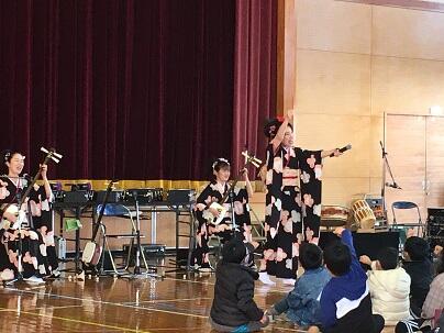 学校と地域を結ぶコンサート(村上三絃道) 投稿日時 : 2021/11/26 学校管理者 「学校と地域を結ぶコンサート2021」が行われました。津軽三味線の村上三絃道の迫力ある演奏と、三味線体験、日本の南から北の民謡など、多彩な内容が盛り込まれたコンサートで、あっという間に時間が過ぎてしまいました。 地域の方も参加してくださり、一緒に楽しんでくださいました。学校に地域の方が来られるのは、久しぶりのことで、よい時間が過ごせました。 村上三絃道の皆様、素敵なコンサートをありがとうございました。