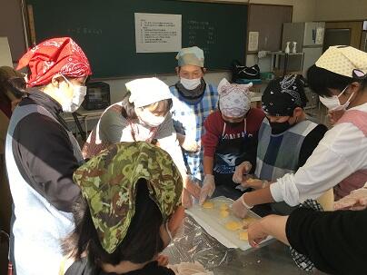 地域の方とお菓子作り 投稿日時 : 2021/12/09 学校管理者 地域の方にご指導いただいて、チーズまんじゅうをつくりました。 手作りで焼きたてのチーズまんじゅうは、とてもおいしいと、子どもたちも大喜びでした。地域の方に教えていただいてお話ができたことも嬉しかったようです。 ご協力、本当にありがとうございました。