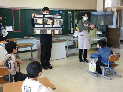 2021年12月の記事一覧 2021年12月 全ての記事 カテゴリ 今日の出来事 連絡事項 報告事項 ミーティング 本・雑誌 ニュース 映画・テレビ 音楽 スポーツ パソコン・インターネット ペット 総合学習 アニメ・コミック アーカイブ 2025年12月 (2) 2025年11月 (5) 2025年10月 (5) 2025年9月 (5) 2025年8月 (3) 2025年7月 (3) 2025年6月 (6) 2025年5月 (6) 2025年4月 (8) 2025年3月 (7) 2025年2月 (6) 2025年1月 (6) 2024年12月 (7) 2024年11月 (13) 2024年10月 (5) 2024年9月 (9) 2024年8月 (4) 2024年7月 (5) 2024年6月 (9) 2024年5月 (6) 2024年4月 (6) 2024年3月 (7) 2024年2月 (5) 2024年1月 (3) 2023年12月 (5) 2023年11月 (4) 2023年10月 (5) 2023年9月 (2) 2023年8月 (2) 2023年7月 (2) 2023年6月 (6) 2023年5月 (5) 2023年4月 (5) 2023年3月 (7) 2023年2月 (6) 2023年1月 (2) 2022年12月 (4) 2022年11月 (4) 2022年10月 (3) 2022年9月 (3) 2022年8月 (3) 2022年7月 (8) 2022年6月 (6) 2022年5月 (7) 2022年4月 (4) 2022年3月 (10) 2022年2月 (8) 2022年1月 (5) 2021年12月 (8) 2021年11月 (9) 2021年10月 (13) 2021年9月 (8) 2021年8月 (2) 2021年7月 (8) 2021年6月 (13) 2021年5月 (3) 2021年4月 (7) 2021年3月 (4) 2021年2月 (5) 2021年1月 (3) 2020年12月 (7) 2020年11月 (6) 2020年10月 (5) 2020年9月 (5) 2020年8月 (2) 2020年7月 (5) 2020年6月 (5) 2020年5月 (7) 2020年4月 (3) 2020年3月 (2) 2020年2月 (4) 2020年1月 (1) 2019年12月 (2) 2019年11月 (3) 2019年10月 (3) 2019年9月 (4) 2019年8月 (1) 2019年7月 (2) 2019年6月 (1) 2019年5月 (5) 2019年4月 (5) 20件 1件 5件 10件 20件 50件 100件 1・2年生と6年生の交流 投稿日時 : 2021/12/24 学校管理者 6年生が企画した「1・2年生といっしょにあそぼう」がありました。 前半は運動場で、後半は体育館で、楽しみました。 1・2年生が楽しめるようにと、遊びやルールも工夫していて、接し方も大変優しく笑顔で、さすが上級生だと感心しました。 おわりの時間がくると、「まだ一緒に遊びたかった」とつぶやく1年生でした。 新1年生との交流会 投稿日時 : 2021/12/22 学校管理者 来年度、新1年生になる子どもを招待して、昔の遊びを一緒に楽しみました。 この交流会の前に、地域の方に手作りの「竹馬」「竹ぽっくり」「竹とんぼ」「水でっぽう」で、遊び方を教えてもらった1・2年生は、今度は新1年生に教えていました。 また、地域の方も交流会に招待して、遊び方と地域の方の紹介をまとめた、1・2年生の発表を見ていただきました。 みんな笑顔で活動でき、よいつながりができました。 令和3年を締めくくるあいさ2の日 投稿日時 : 2021/12/22 学校管理者 令和3年最後のあいさ2の日でした。 風はなかったものの、かなり冷え込みました。 それでも朝早くから、ボランティアの方々が校門で子どもたちの登校を見守ってくださいました。ありがとうございます。 12月読み聞かせ 投稿日時 : 2021/12/20 学校管理者 令和3年最後の読みきかせをしていただきました。 寒い朝に心があたたかくなる時間でした。フルーツバスケットのみなさま、ありがとうございました。 給食感謝集会 投稿日時 : 2021/12/20 学校管理者 学校給食の歴史や意義、役割、食品について、給食委員会の子どもたちが、紙芝居やクイズにまとめて発表しました。 また、高原町の栄養教諭から「食」についてお話をいただきました。さいごに、日頃の感謝の気持ちをメッセージカードにして、6年児童より贈りました。 給食委員会の児童が主になって作成と練習を重ねて、内容のつまった貴重な集会にしてくれました。 手洗いで感染症予防 投稿日時 : 2021/12/14 学校管理者 石けんで手洗いした後、ハンカチでしっかり拭いて、消毒する。当たり前のことですが、なかなかできていない様子が見られたため食パンをつかった実験結果をもとに、養護助教諭が指導をしました。水洗いだけをしたときや、消毒だけしたとき、ハンカチで拭かなかったときの手を押しつけた、黒い斑点のある食パンを見て、子ども達は驚きの声をあげていました。しっかり石けん手洗い、ハンカチで拭くことができるようになると思います。 地域の方とお菓子作り 投稿日時 : 2021/12/09 学校管理者 地域の方にご指導いただいて、チーズまんじゅうをつくりました。 手作りで焼きたてのチーズまんじゅうは、とてもおいしいと、子どもたちも大喜びでした。地域の方に教えていただいてお話ができたことも嬉しかったようです。 ご協力、本当にありがとうございました。 小中合同持久走大会 投稿日時 : 2021/12/05 学校管理者 穏やかな天気の中、小中合同持久走大会と門松づくりを実施することができました。 たくさんの応援を力に、鍛えてきた身体と苦しさに負けない強い心で、全員が最後まで精一杯走りきりました。 また、保護者の方々のご協力で、今年も立派な門松ができあがりました。来年もよい年を迎えられます。