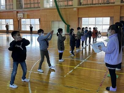 なわとび大会 投稿日時 : 2022/02/18 学校管理者 延期していたなわとび大会を、感染対策を行って実施しました。 寒い日も毎日練習をしていた1・2年生は、跳べるようになっていました。2年生は二重跳びを披露しました。 3・4年生は曲に乗って複数の技を披露しました。 5・6年生は、二重跳び、はやぶさ、後ろ二重跳びなど、曲に合わせて大技を披露し、圧巻でした。 高学年の技に憧れをもち、練習をしていること。 互いにできるようになったことを認め合っていること。 その成果が発揮され、感動した大会でした。