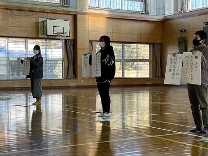 2022年2月の記事一覧 2022年2月 全ての記事 カテゴリ 今日の出来事 連絡事項 報告事項 ミーティング 本・雑誌 ニュース 映画・テレビ 音楽 スポーツ パソコン・インターネット ペット 総合学習 アニメ・コミック アーカイブ 2025年12月 (2) 2025年11月 (5) 2025年10月 (5) 2025年9月 (5) 2025年8月 (3) 2025年7月 (3) 2025年6月 (6) 2025年5月 (6) 2025年4月 (8) 2025年3月 (7) 2025年2月 (6) 2025年1月 (6) 2024年12月 (7) 2024年11月 (13) 2024年10月 (5) 2024年9月 (9) 2024年8月 (4) 2024年7月 (5) 2024年6月 (9) 2024年5月 (6) 2024年4月 (6) 2024年3月 (7) 2024年2月 (5) 2024年1月 (3) 2023年12月 (5) 2023年11月 (4) 2023年10月 (5) 2023年9月 (2) 2023年8月 (2) 2023年7月 (2) 2023年6月 (6) 2023年5月 (5) 2023年4月 (5) 2023年3月 (7) 2023年2月 (6) 2023年1月 (2) 2022年12月 (4) 2022年11月 (4) 2022年10月 (3) 2022年9月 (3) 2022年8月 (3) 2022年7月 (8) 2022年6月 (6) 2022年5月 (7) 2022年4月 (4) 2022年3月 (10) 2022年2月 (8) 2022年1月 (5) 2021年12月 (8) 2021年11月 (9) 2021年10月 (13) 2021年9月 (8) 2021年8月 (2) 2021年7月 (8) 2021年6月 (13) 2021年5月 (3) 2021年4月 (7) 2021年3月 (4) 2021年2月 (5) 2021年1月 (3) 2020年12月 (7) 2020年11月 (6) 2020年10月 (5) 2020年9月 (5) 2020年8月 (2) 2020年7月 (5) 2020年6月 (5) 2020年5月 (7) 2020年4月 (3) 2020年3月 (2) 2020年2月 (4) 2020年1月 (1) 2019年12月 (2) 2019年11月 (3) 2019年10月 (3) 2019年9月 (4) 2019年8月 (1) 2019年7月 (2) 2019年6月 (1) 2019年5月 (5) 2019年4月 (5) 5件 1件 5件 10件 20件 50件 100件 お別れ遠足 投稿日時 : 2022/02/25 学校管理者 暖かい日差しの中、お別れ遠足をすることができました。 お別れ集会、宝探し、ウォークラリー、ドッジボール、おにごっこと、感謝の気持ちを伝え、楽しい時間を過ごすことができました。 詩の発表と感想交流 投稿日時 : 2022/02/24 学校管理者 2年生が、国語でつくった詩を、町内の小学校の2年生とオンラインで発表し合いました。 発表し合うという目的をもって、大変意欲的に作り、発表しました。また、詩を作る際のポイントを意識しながら、感想を発表することができました。 学校関係者評価 投稿日時 : 2022/02/24 学校管理者 小・中学校合同で学校関係者評価委員会を行いました。 参観授業では、タブレットを使う場面から「先生方の教材準備の労力が軽減されますね」「子どもは使い方を覚えるのが速いでしょう」「先生は、タブレットの操作が大変ですね」など、声が聞かれました。 協議では、「家庭で、親も子も本を読む時間をつくることの大切さを啓発していく必要がある」「あいさつは、一人でもどこでもできるように、家庭と学校と地域で意識することが大切」等、貴重な意見をいただきました。 積極的に情報を得て、ご意見をいただけることが、大変ありがたいです。ご意見を活かして、さらに教育活動を充実させていきます。 なわとび大会 投稿日時 : 2022/02/18 学校管理者 延期していたなわとび大会を、感染対策を行って実施しました。 寒い日も毎日練習をしていた1・2年生は、跳べるようになっていました。2年生は二重跳びを披露しました。 3・4年生は曲に乗って複数の技を披露しました。 5・6年生は、二重跳び、はやぶさ、後ろ二重跳びなど、曲に合わせて大技を披露し、圧巻でした。 高学年の技に憧れをもち、練習をしていること。 互いにできるようになったことを認め合っていること。 その成果が発揮され、感動した大会でした。 そうじの仕方を学ぼう 投稿日時 : 2022/02/17 学校管理者 掃除場所が代わったのを機に、そうじの仕方を上手な子ども達から学ぶ機会をつくりました。 全校児童が、担当職員の解説を聞きながら、名人3名のそうじに注目しました。 明日からのそうじが、より上手にできそうです。 12 »