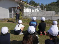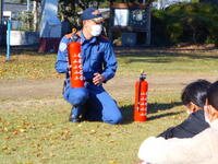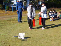 運動場へ避難後は、高原分遣所の職員の方より、火事等について気をつけることと消火器の使い方を説明していただき、6年生と職員が消火訓練を行いました。