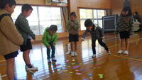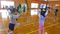 体育館で、1・2年生が準備した遊びを一緒にしました。1・2年生は、ゲームの説明をして、やさしく教えてあげていました。