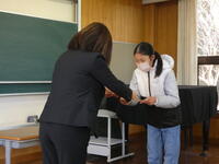校長の話の後には、生徒指導主事の冬休みに向けた話、表彰を行いました。