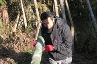 朝早くから多くのPTA会員の皆さんが集まり、竹の切り出しから始まりました。
