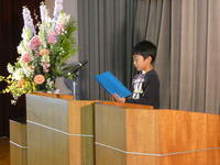 1年生の代表が1年間がんばったことを堂々と発表しました。