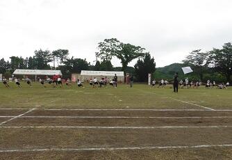 運動会副実行委員長の開会のことばにはじまり、本番同様に熱気にあふれた競技が繰り広げられました。また、競技だけでなく、応援もとても工夫したものでした。小・中学生がともに協力し合い、素晴らしい予行練習となりました。