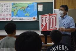 「印」に関するお話を聞いた後、子どもたち一人一人がそれぞれの印を彫りました。難しそうなところもありましたが、それぞれがしっかりと立派な印を作ることができました。物を作ることの苦労や喜びを体験し「ものづくりの魅力」を知ることができた貴重な機会となりました。