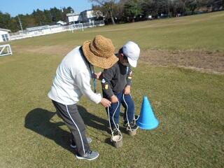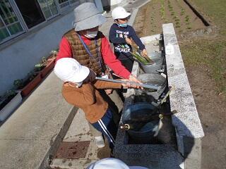 地域の方に昔の遊びを教えてもらおう 投稿日時 : 2021/11/16 学校管理者 谷川さんご夫妻、永友さんご夫妻、大濵さんに、昔の遊びを教えていただきました。 竹馬、竹ぽっくり、竹とんぼ、水鉄砲、木ごま。すべて谷川さんの手作りでした。手作りと聞いて、子どもたちから「えっ!すごい!」と歓声があがりました。 すべての遊びを、優しく根気強く教えていただき、初めて体験する遊びも、何度も挑戦して上手になりました。 いつもあいさ2の日に校門で迎えてくださったり、一緒に歩いて登校してくださったりする地域の方と、交流できたことも、大変嬉しかったようです。
